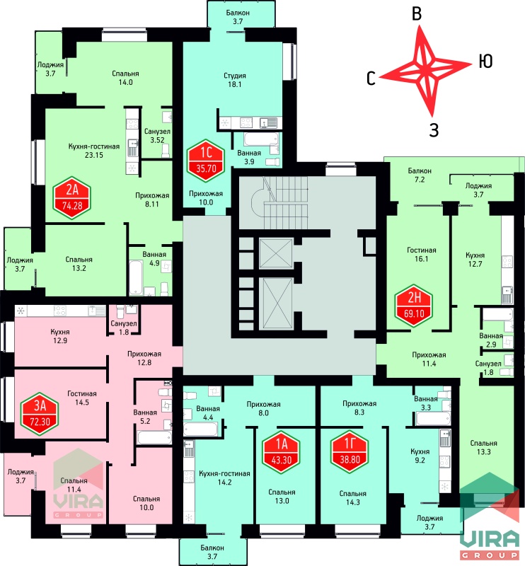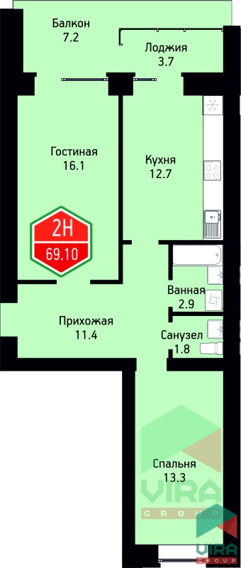 Площадь: 69.1 м2